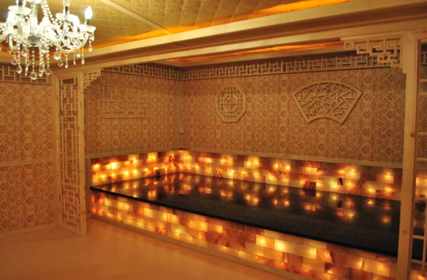 牆麵:喜瑪拉雅鹽磚,鹽石、鹽畫、鹽燈,韓國發熱體係、德國溫控體係。